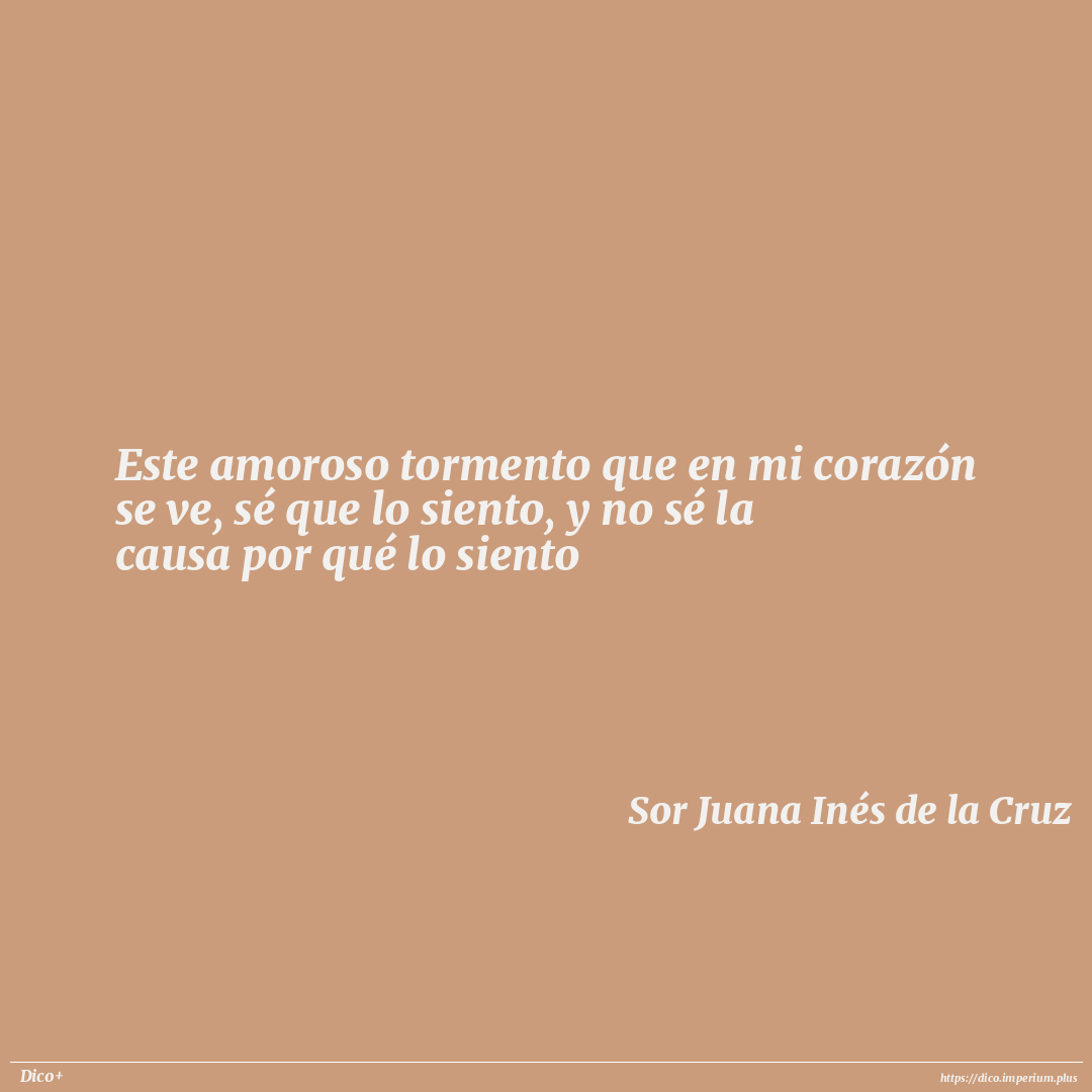 Este amoroso tormento que en mi corazón se ve, sé que lo siento, y no sé la causa por qué lo siento