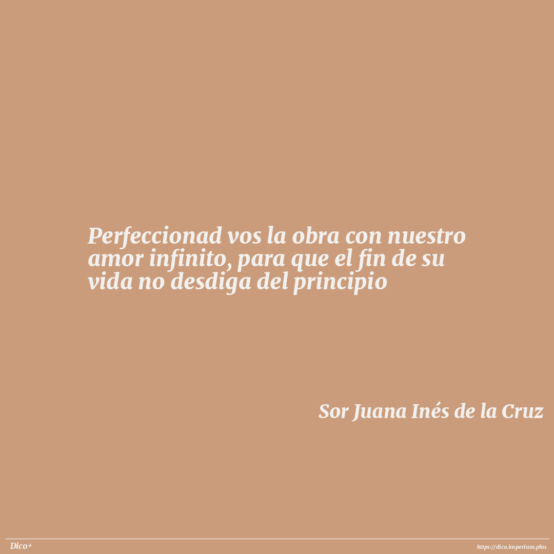 Perfeccionad vos la obra con nuestro amor infinito, para que el fin de su vida no desdiga del principio