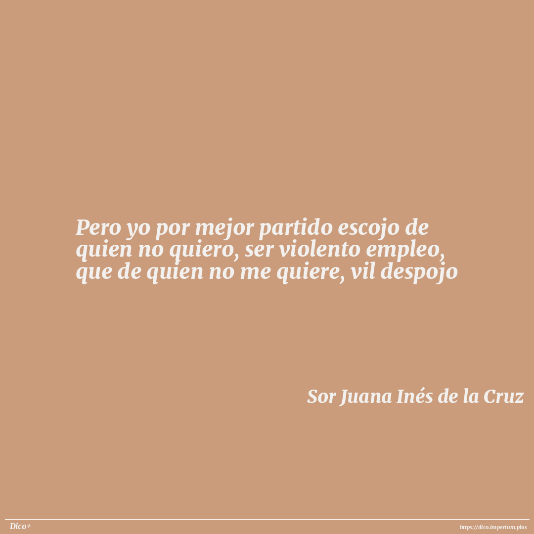 Pero yo por mejor partido escojo de quien no quiero, ser violento empleo, que de quien no me quiere, vil despojo