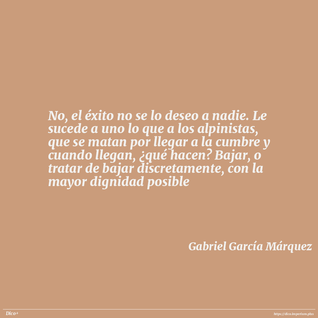 No, el éxito no se lo deseo a nadie. Le sucede a uno lo que a los alpinistas, que se matan por llegar a la cumbre y cuando llegan, ¿qué hacen? Bajar, o tratar de bajar discretamente, con la mayor dignidad posible