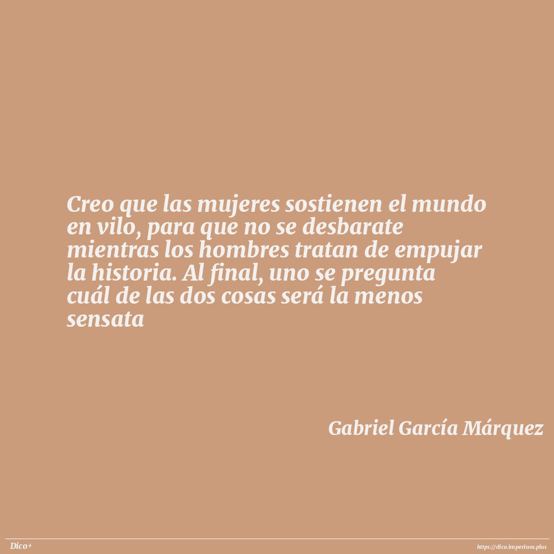 Creo que las mujeres sostienen el mundo en vilo, para que no se desbarate mientras los hombres tratan de empujar la historia. Al final, uno se pregunta cuál de las dos cosas será la menos sensata