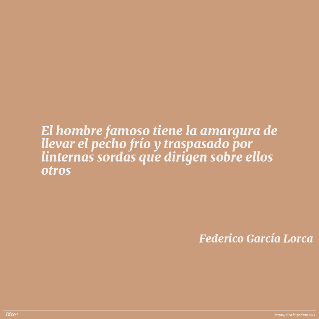 El hombre famoso tiene la amargura de llevar el pecho frío y traspasado por linternas sordas que dirigen sobre ellos otros