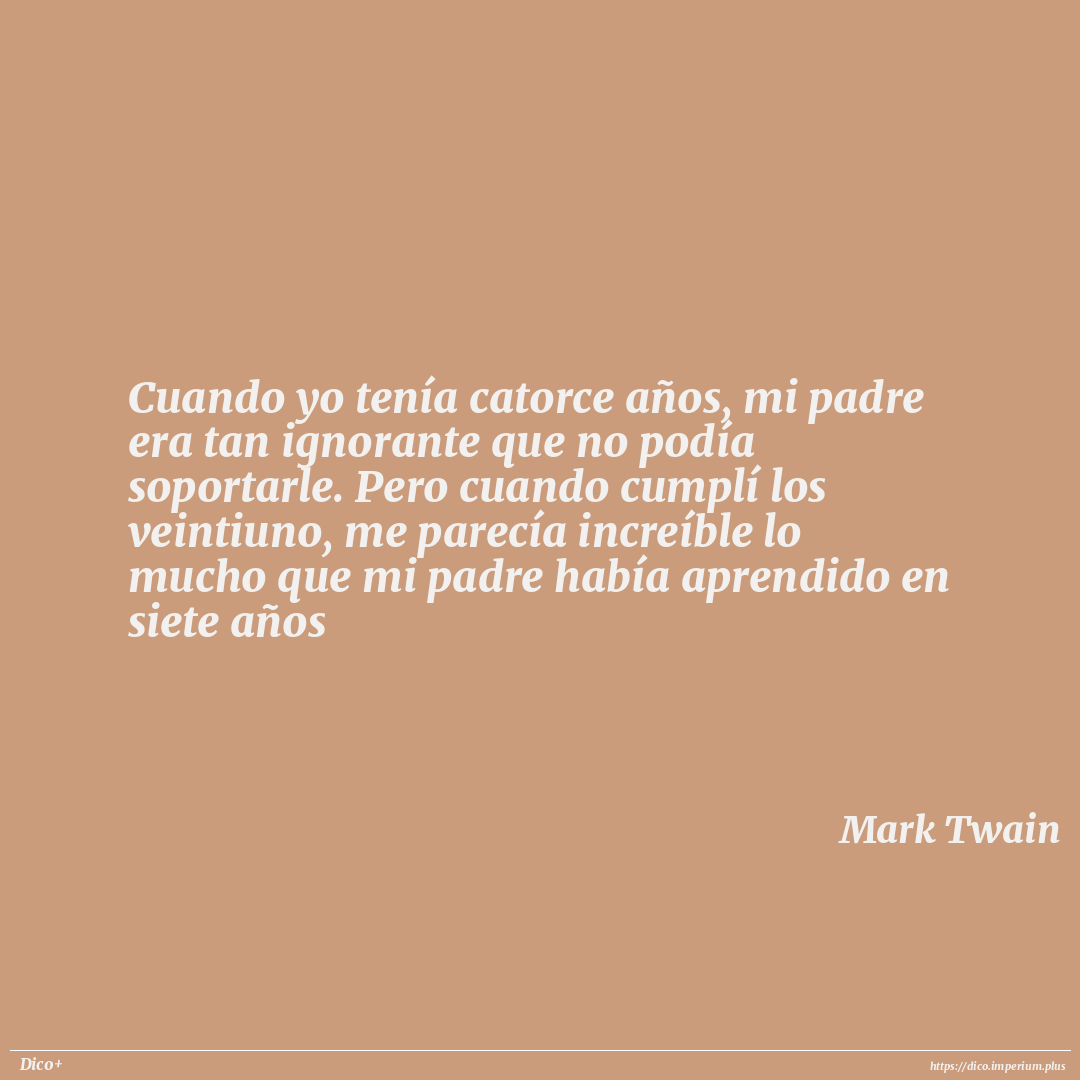 Cuando yo tenía catorce años, mi padre era tan ignorante que no podía soportarle. Pero cuando cumplí los veintiuno, me parecía increíble lo mucho que mi padre había aprendido en siete años