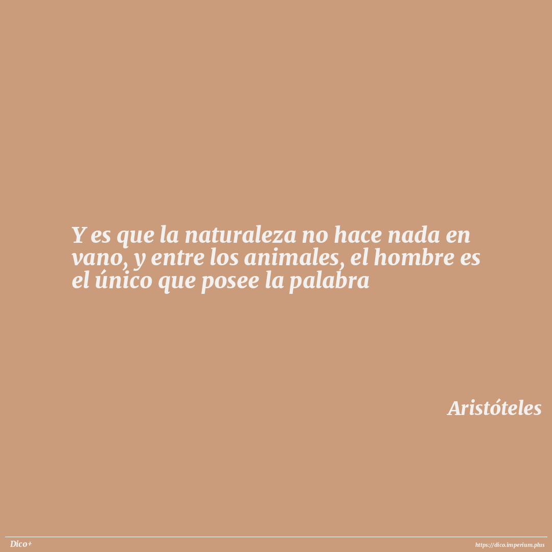 Y es que la naturaleza no hace nada en vano, y entre los animales, el hombre es el único que posee la palabra