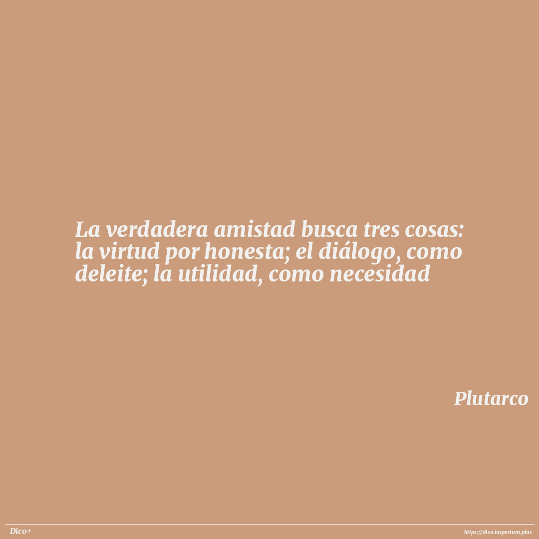 La verdadera amistad busca tres cosas: la virtud por honesta; el diálogo, como deleite; la utilidad, como necesidad