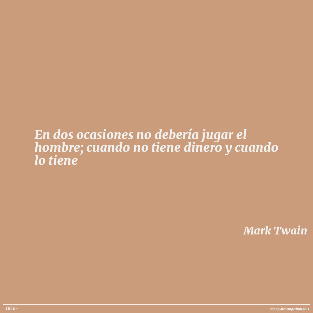 En dos ocasiones no debería jugar el hombre; cuando no tiene dinero y cuando lo tiene