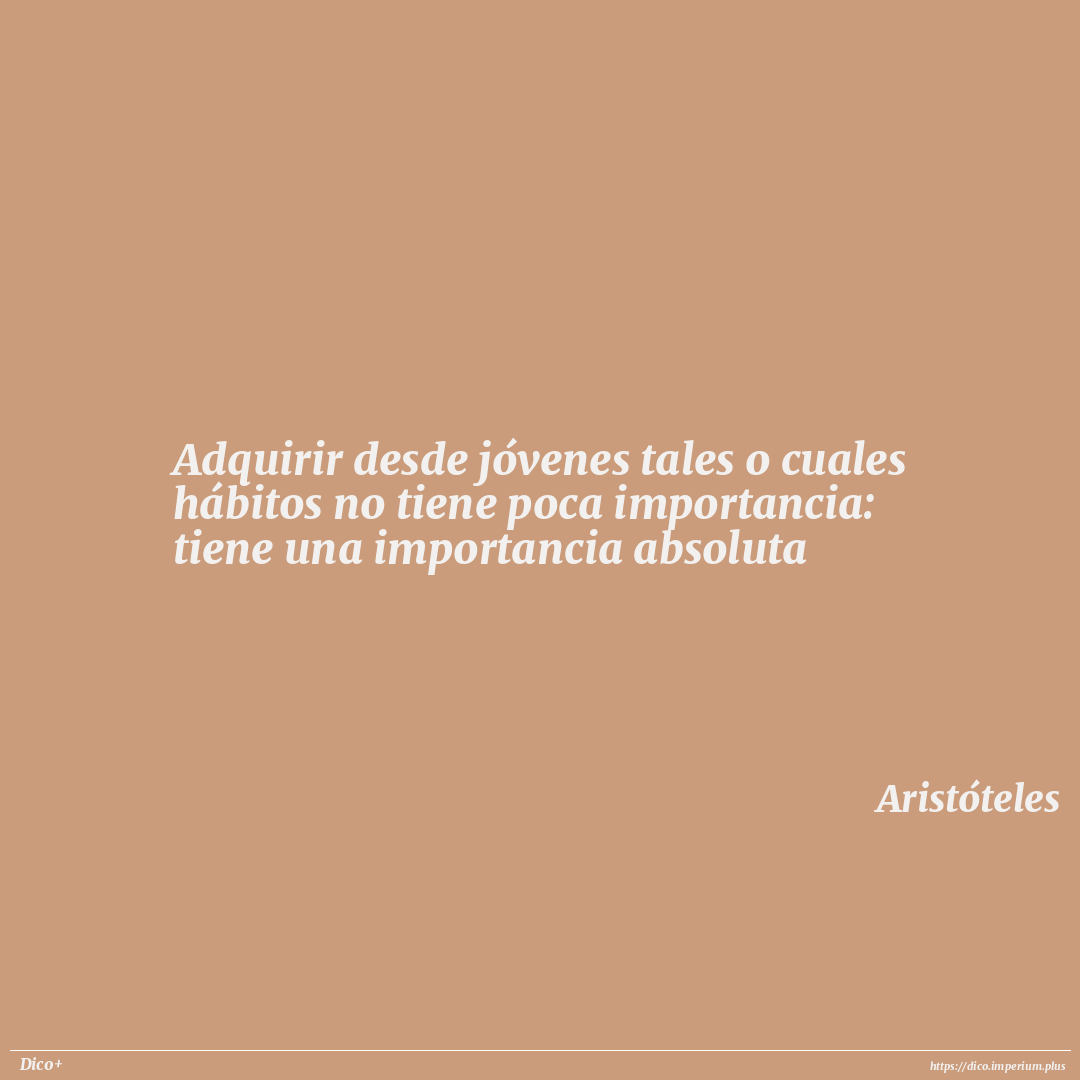 Adquirir desde jóvenes tales o cuales hábitos no tiene poca importancia: tiene una importancia absoluta