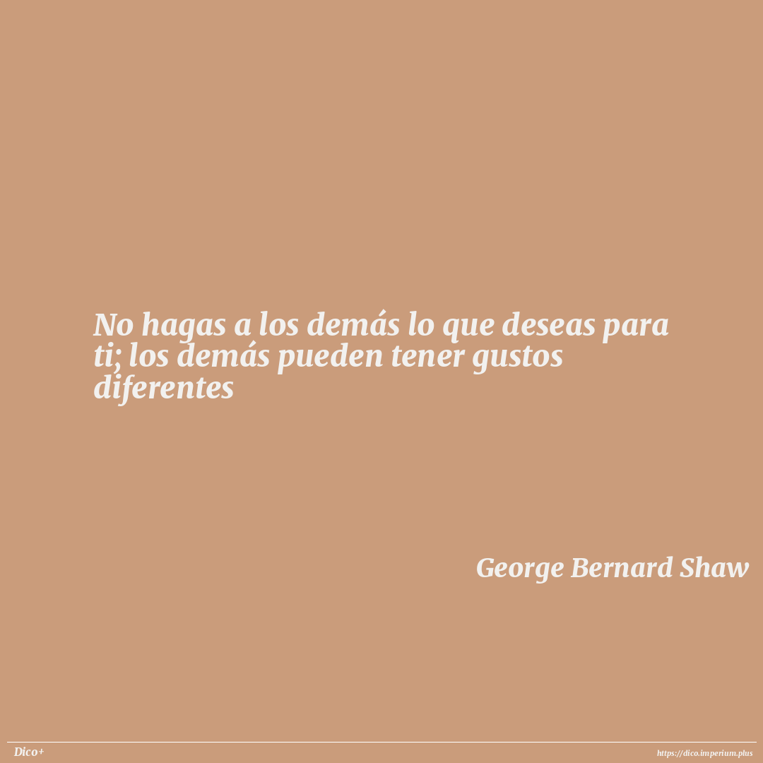 No hagas a los demás lo que deseas para ti; los demás pueden tener gustos diferentes