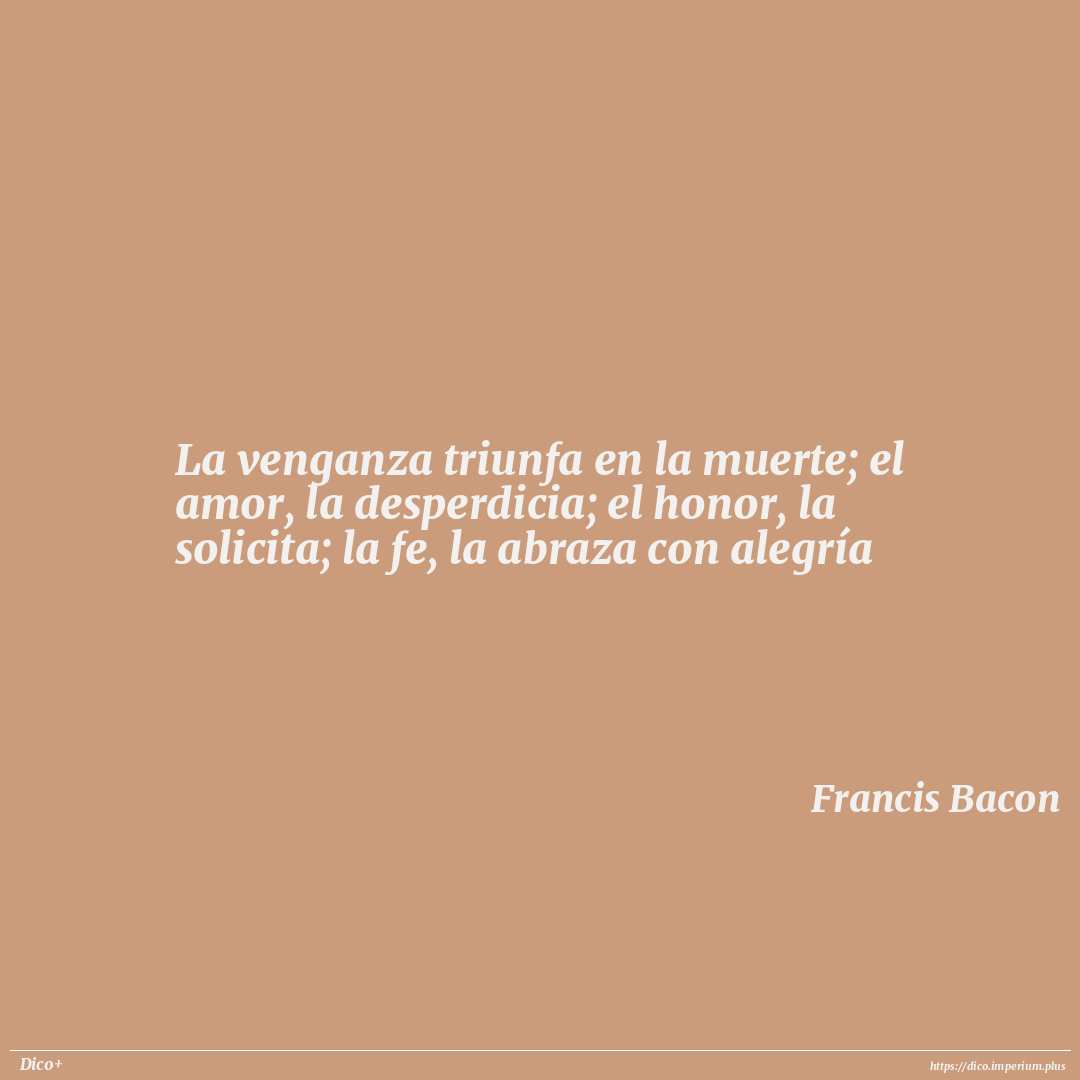 La venganza triunfa en la muerte; el amor, la desperdicia; el honor, la solicita; la fe, la abraza con alegría