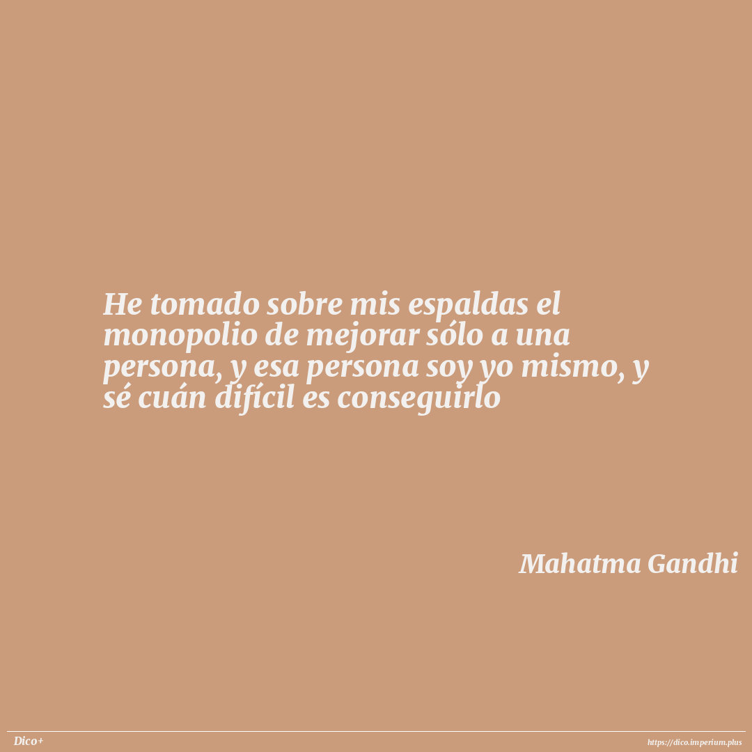 He tomado sobre mis espaldas el monopolio de mejorar sólo a una persona, y esa persona soy yo mismo, y sé cuán difícil es conseguirlo