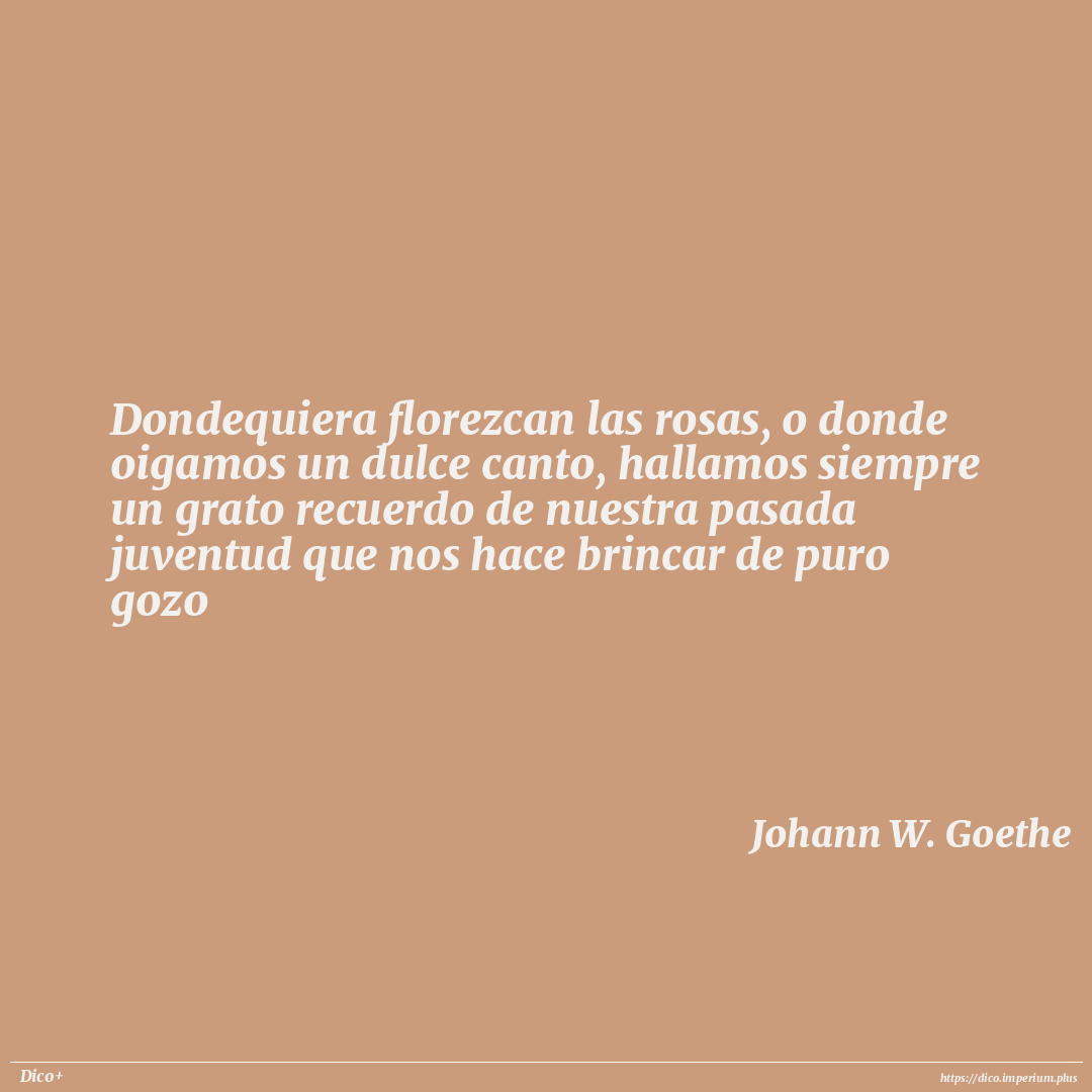 Dondequiera florezcan las rosas, o donde oigamos un dulce canto, hallamos siempre un grato recuerdo de nuestra pasada juventud que nos hace brincar de puro gozo