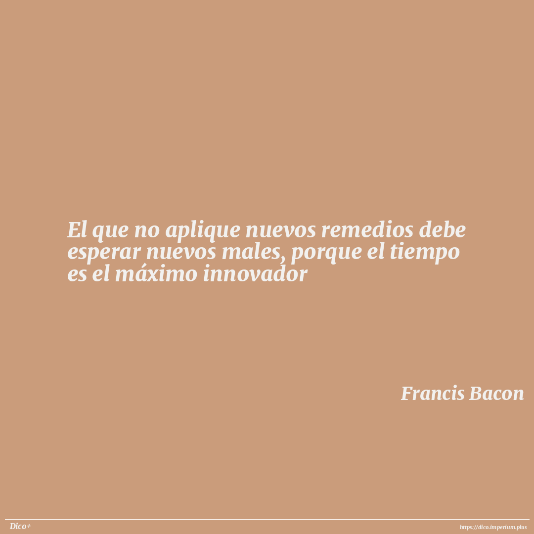 El que no aplique nuevos remedios debe esperar nuevos males, porque el tiempo es el máximo innovador
