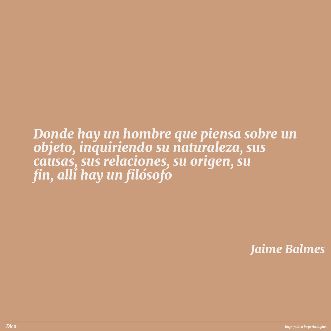 Donde hay un hombre que piensa sobre un objeto, inquiriendo su naturaleza, sus causas, sus relaciones, su origen, su fin, allí hay un filósofo