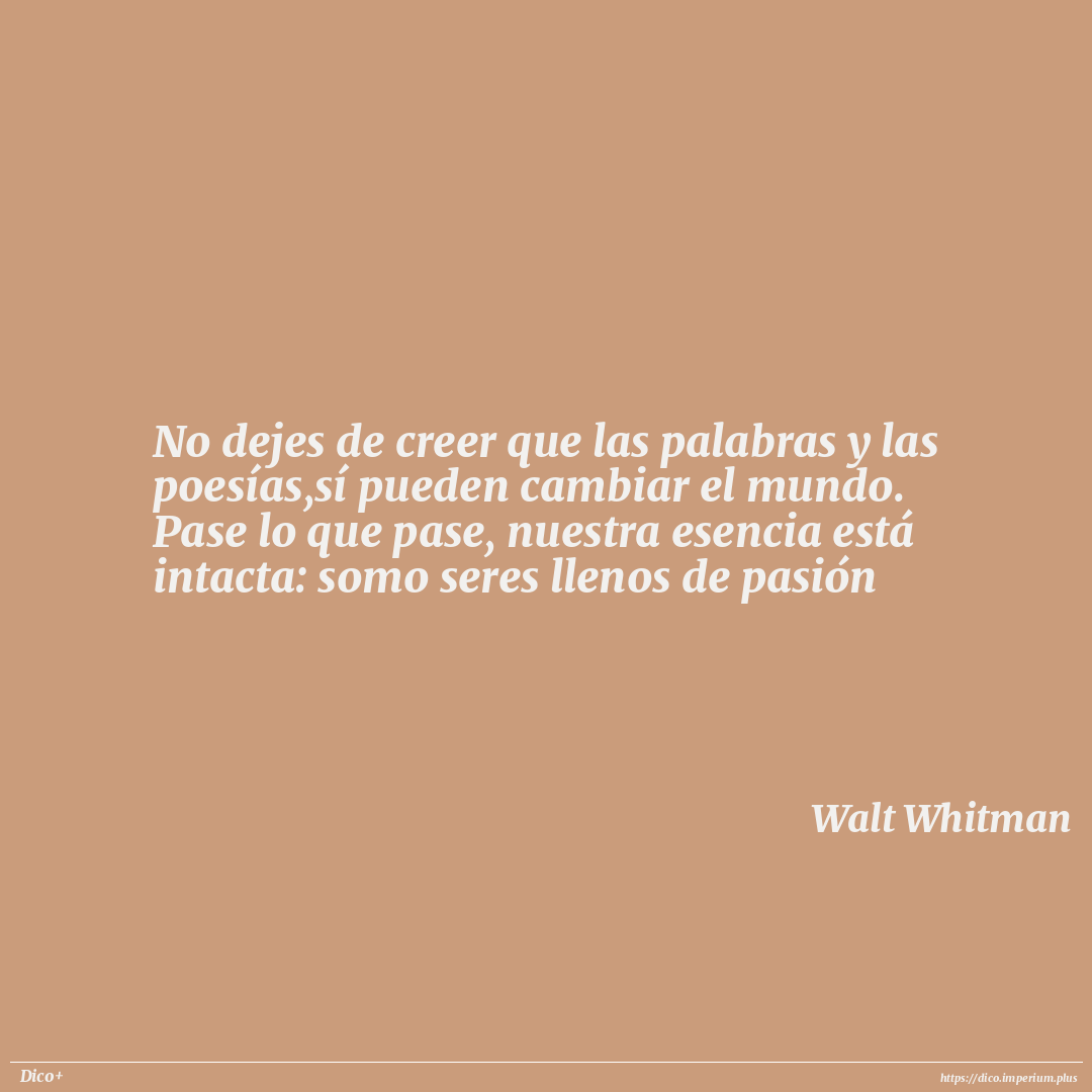 No dejes de creer que las palabras y las poesías,sí pueden cambiar el mundo. Pase lo que pase, nuestra esencia está intacta: somo seres llenos de pasión