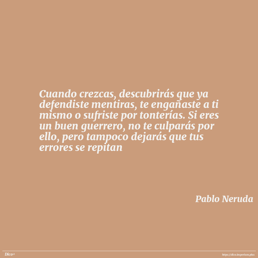 Cuando crezcas, descubrirás que ya defendiste mentiras, te engañaste a ti mismo o sufriste por tonterías. Si eres un buen guerrero, no te culparás por ello, pero tampoco dejarás que tus errores se repitan