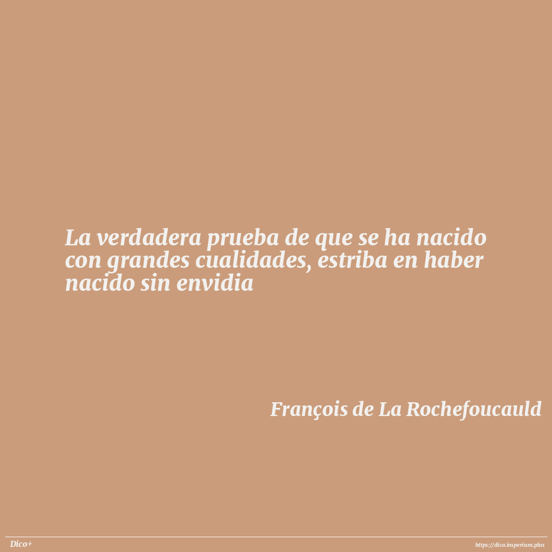 La verdadera prueba de que se ha nacido con grandes cualidades, estriba en haber nacido sin envidia