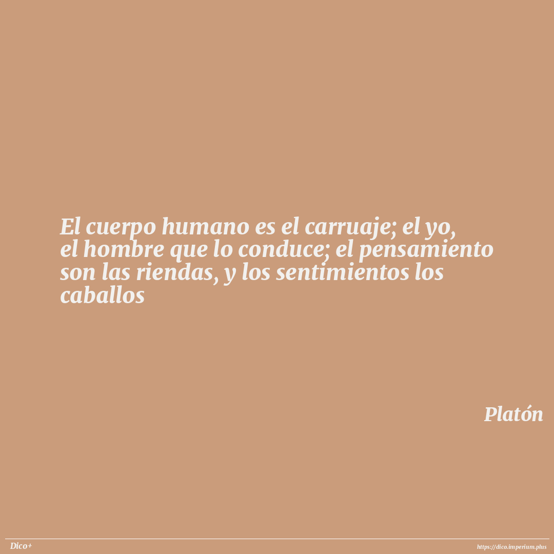 El cuerpo humano es el carruaje; el yo, el hombre que lo conduce; el pensamiento son las riendas, y los sentimientos los caballos