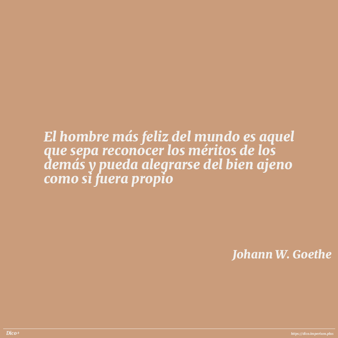 El hombre más feliz del mundo es aquel que sepa reconocer los méritos de los demás y pueda alegrarse del bien ajeno como si fuera propio
