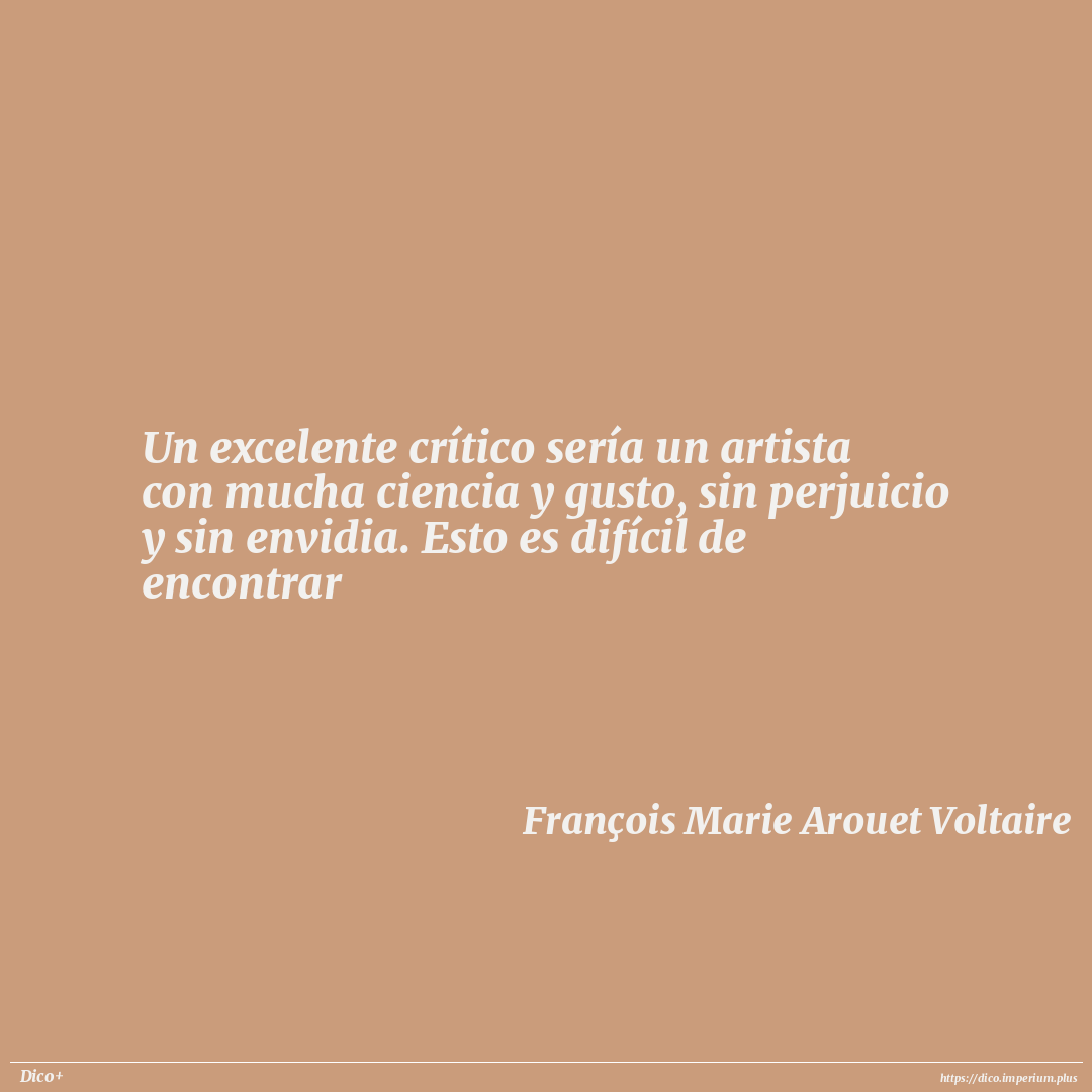 Un excelente crítico sería un artista con mucha ciencia y gusto, sin perjuicio y sin envidia. Esto es difícil de encontrar