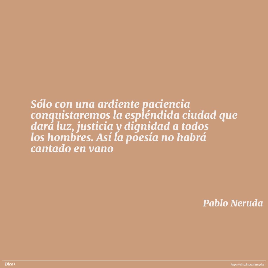 Sólo con una ardiente paciencia conquistaremos la espléndida ciudad que dará luz, justicia y dignidad a todos los hombres. Así la poesía no habrá cantado en vano