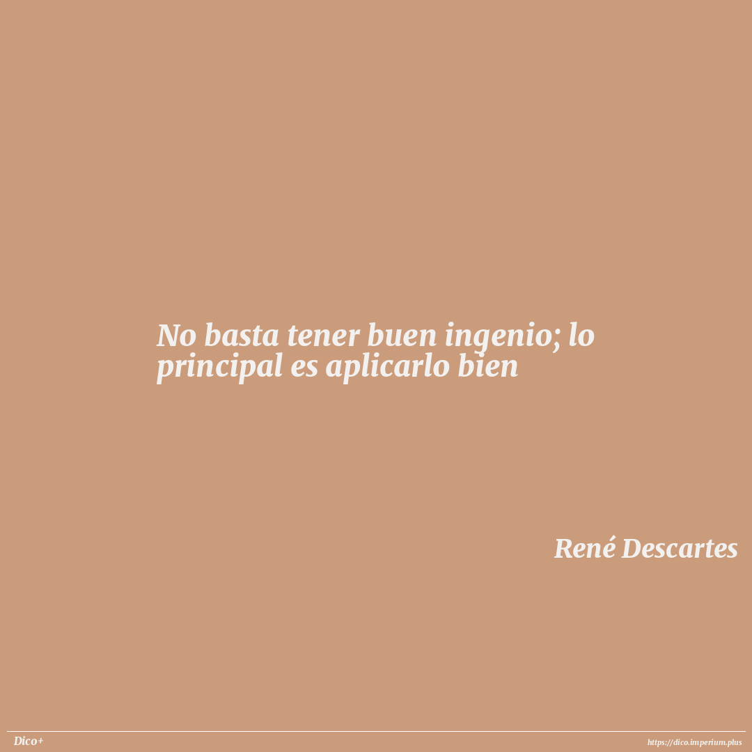 No basta tener buen ingenio; lo principal es aplicarlo bien