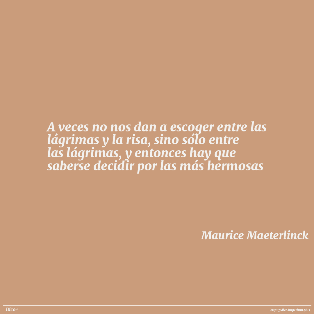 A veces no nos dan a escoger entre las lágrimas y la risa, sino sólo entre las lágrimas, y entonces hay que saberse decidir por las más hermosas