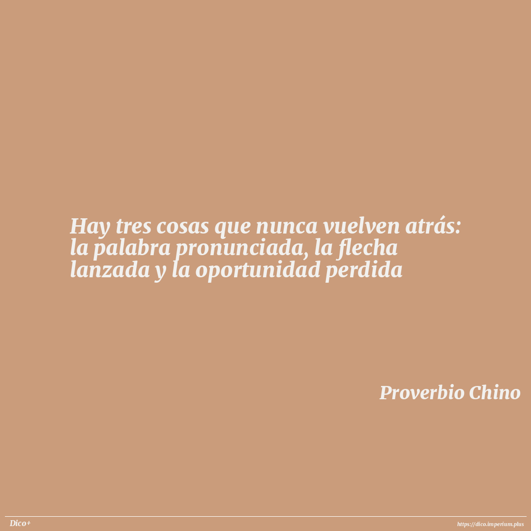 Hay tres cosas que nunca vuelven atrás: la palabra pronunciada, la flecha lanzada y la oportunidad perdida