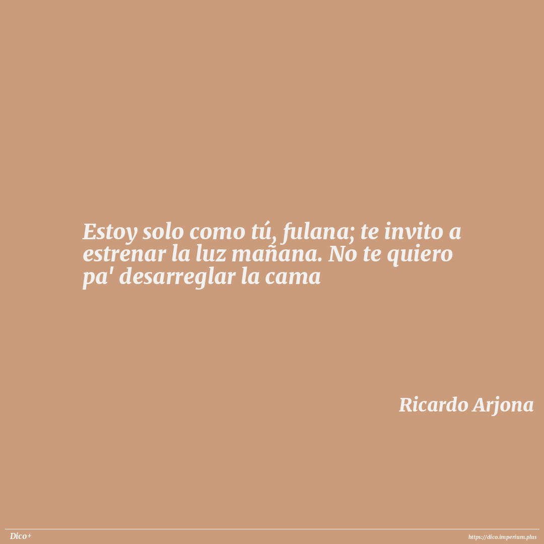 Estoy solo como tú, fulana; te invito a estrenar la luz mañana. No te quiero pa' desarreglar la cama
