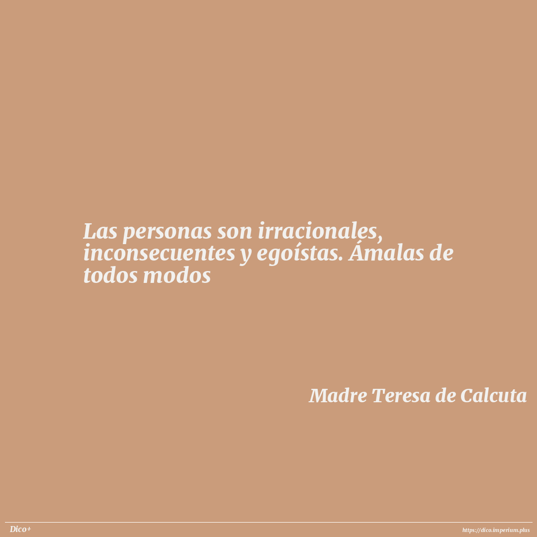 Las personas son irracionales, inconsecuentes y egoístas. Ámalas de todos modos