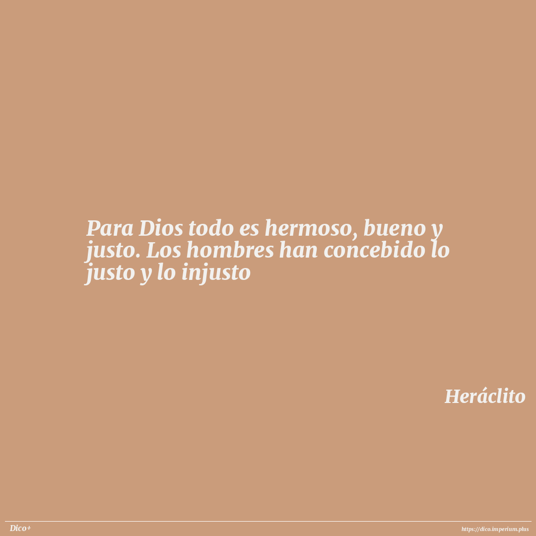 Para Dios todo es hermoso, bueno y justo. Los hombres han concebido lo justo y lo injusto
