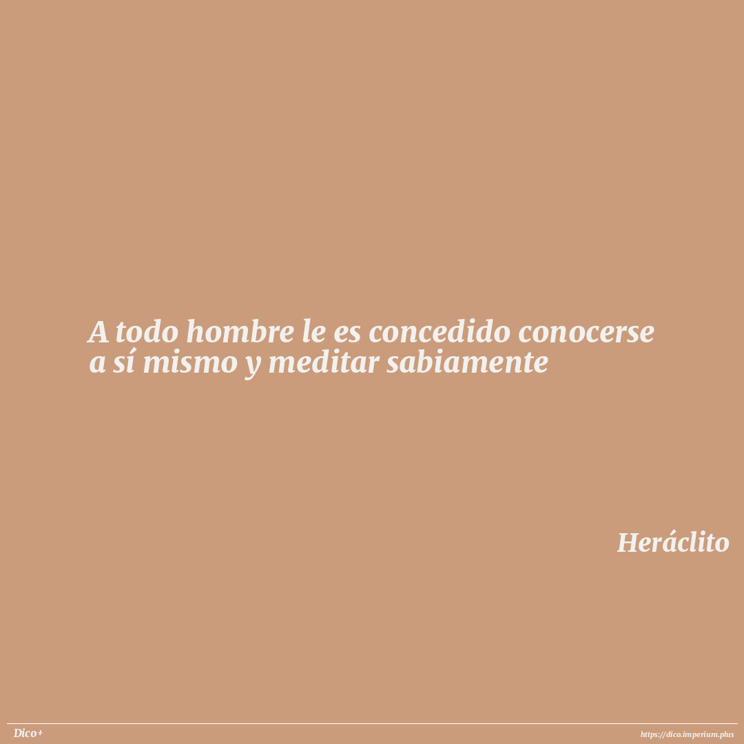 A todo hombre le es concedido conocerse a sí mismo y meditar sabiamente