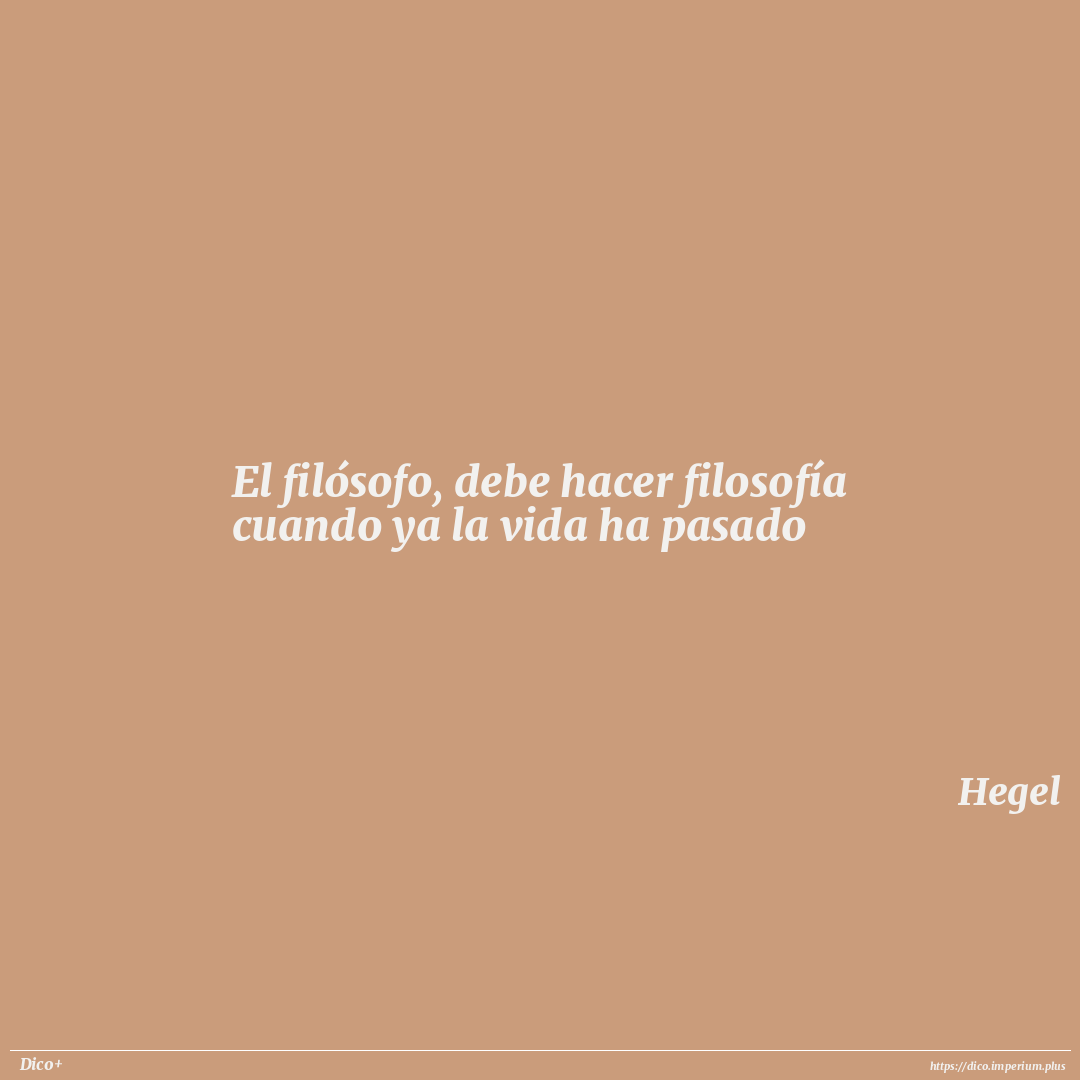 El filósofo, debe hacer filosofía cuando ya la vida ha pasado