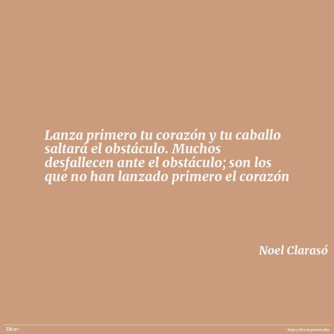 Lanza primero tu corazón y tu caballo saltará el obstáculo. Muchos desfallecen ante el obstáculo; son los que no han lanzado primero el corazón