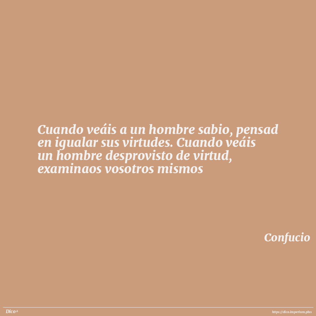 Cuando veáis a un hombre sabio, pensad en igualar sus virtudes. Cuando veáis un hombre desprovisto de virtud, examinaos vosotros mismos