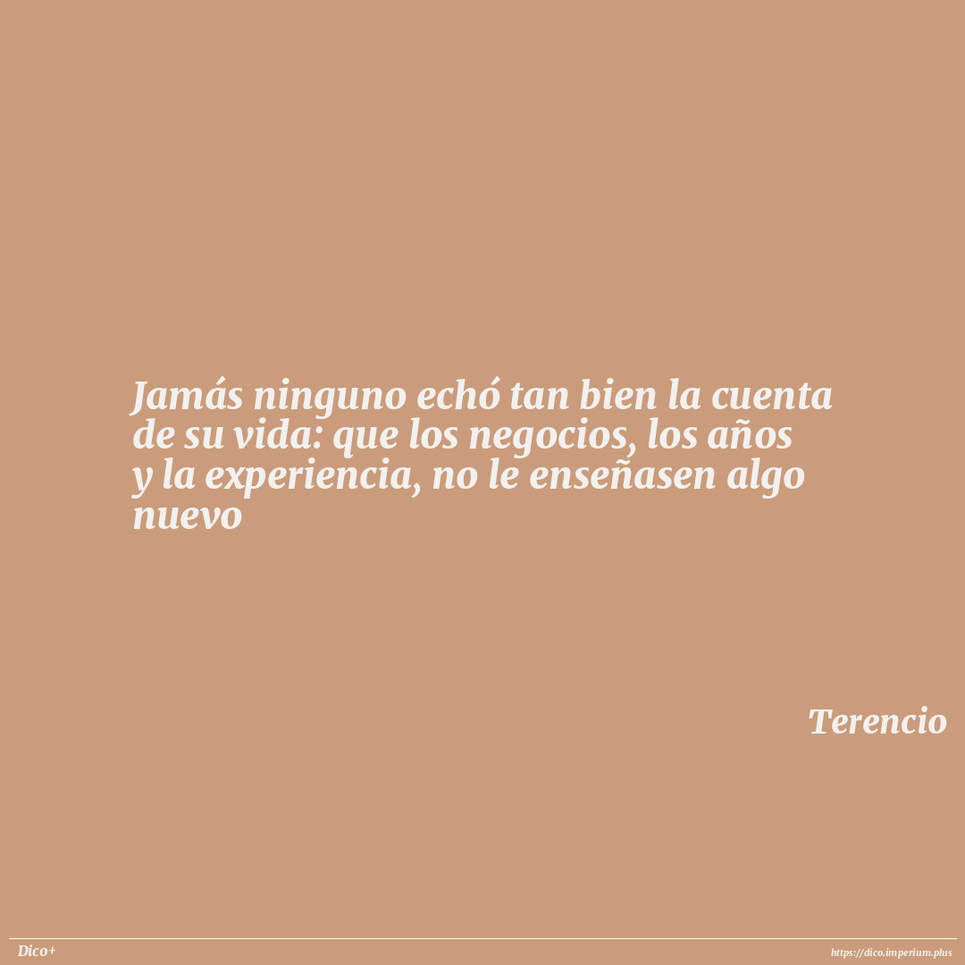 Jamás ninguno echó tan bien la cuenta de su vida: que los negocios, los años y la experiencia, no le enseñasen algo nuevo