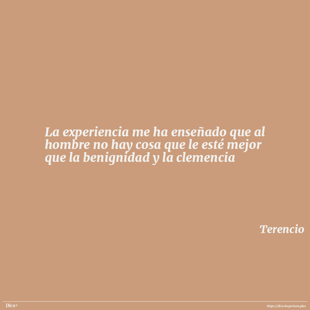 La experiencia me ha enseñado que al hombre no hay cosa que le esté mejor que la benignidad y la clemencia
