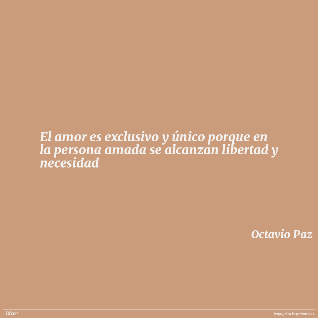 El amor es exclusivo y único porque en la persona amada se alcanzan libertad y necesidad