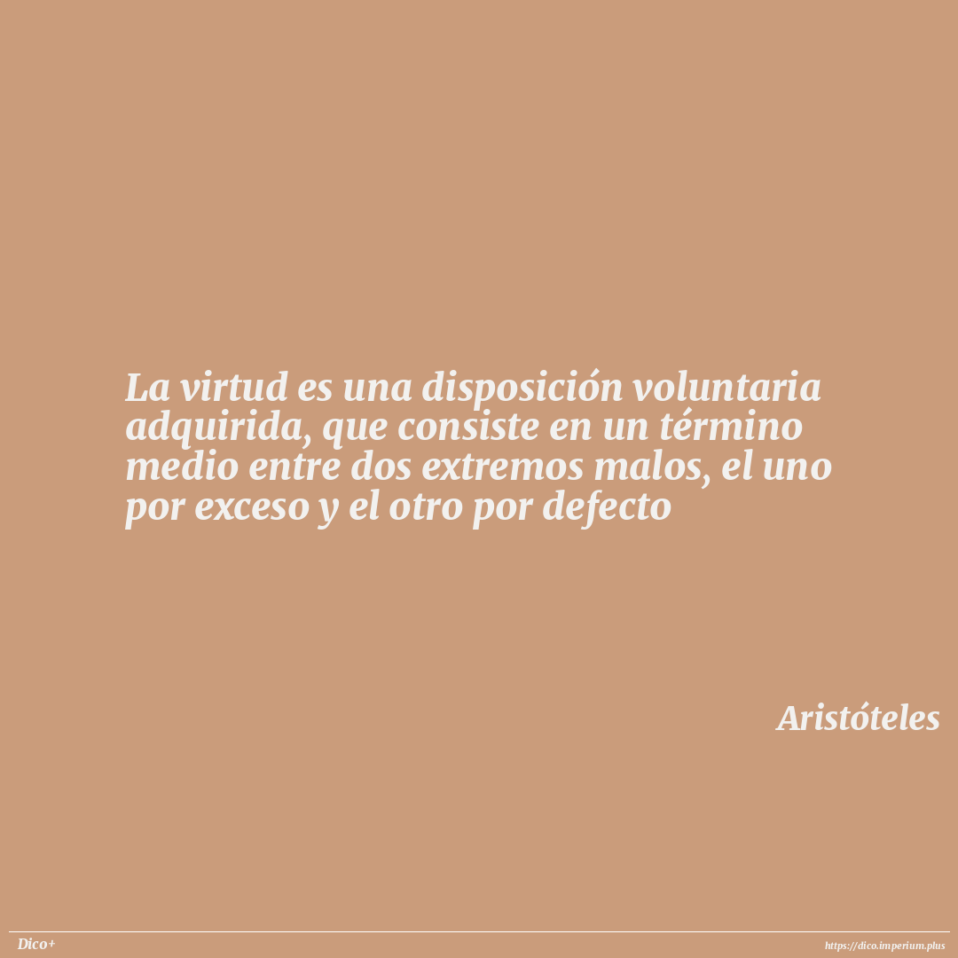 La virtud es una disposición voluntaria adquirida, que consiste en un término medio entre dos extremos malos, el uno por exceso y el otro por defecto