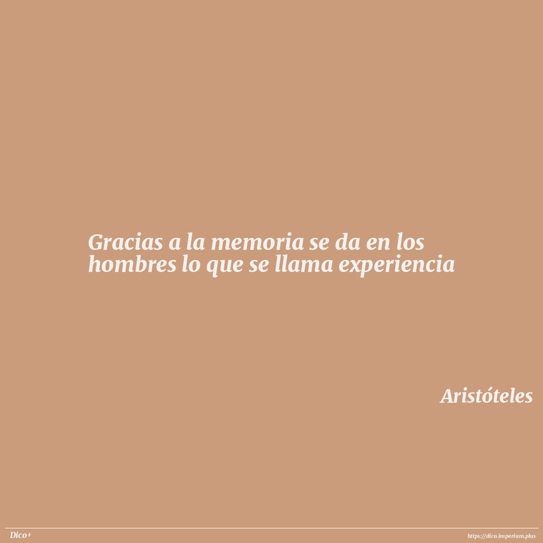 Gracias a la memoria se da en los hombres lo que se llama experiencia