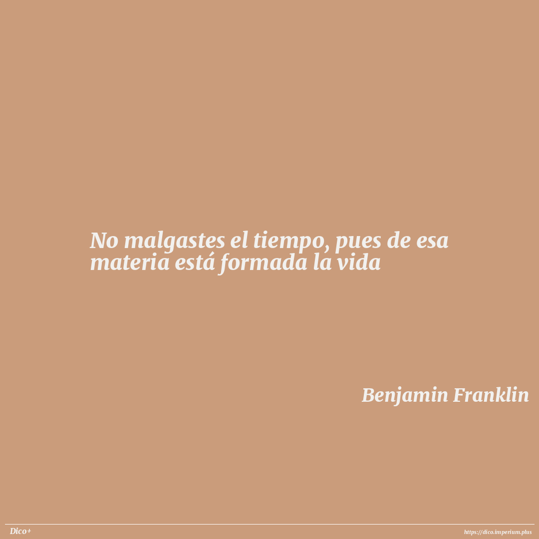 No malgastes el tiempo, pues de esa materia está formada la vida