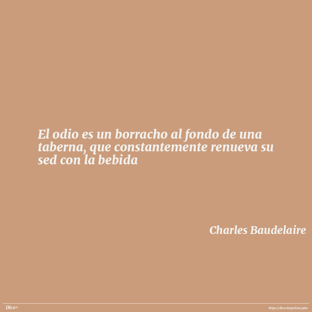 El odio es un borracho al fondo de una taberna, que constantemente renueva su sed con la bebida