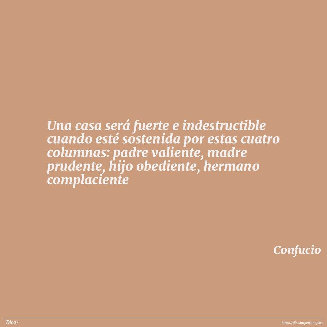 Una casa será fuerte e indestructible cuando esté sostenida por estas cuatro columnas: padre valiente, madre prudente, hijo obediente, hermano complaciente