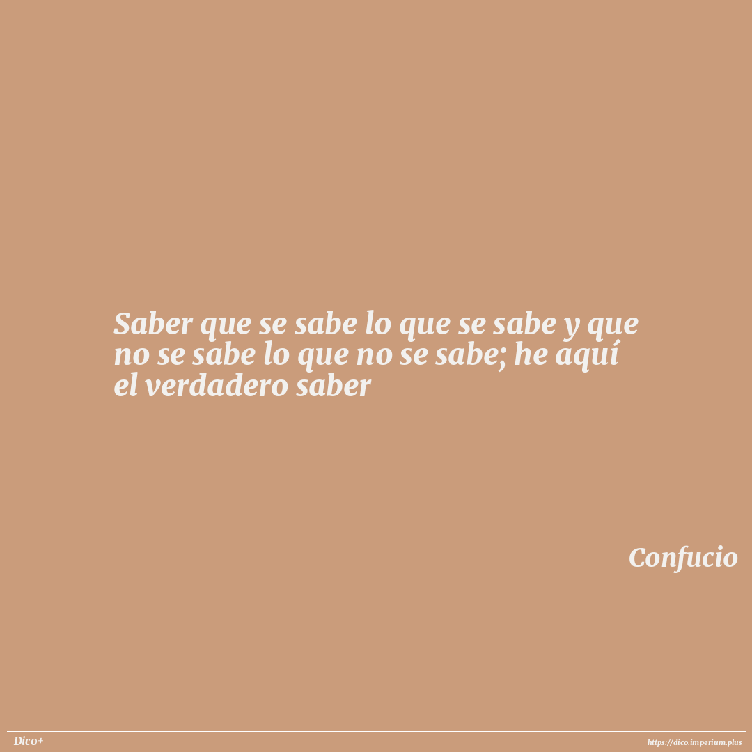 Saber que se sabe lo que se sabe y que no se sabe lo que no se sabe; he aquí el verdadero saber