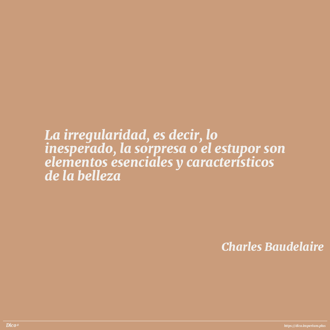 La irregularidad, es decir, lo inesperado, la sorpresa o el estupor son elementos esenciales y característicos de la belleza