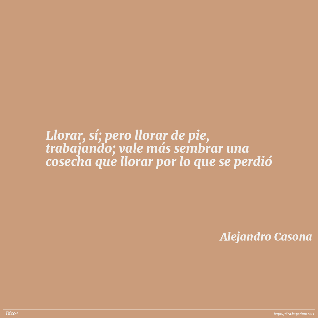 Llorar, sí; pero llorar de pie, trabajando; vale más sembrar una cosecha que llorar por lo que se perdió