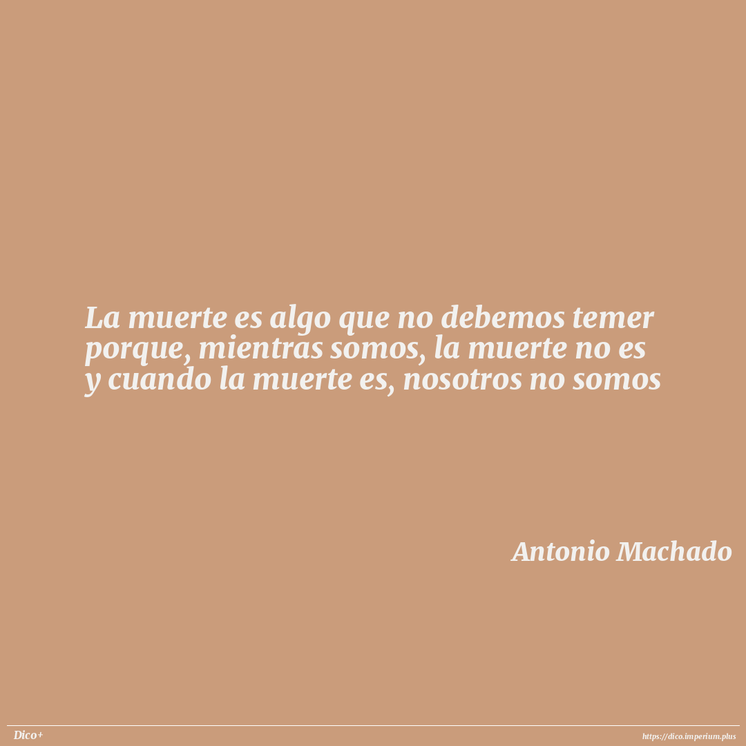 La muerte es algo que no debemos temer porque, mientras somos, la muerte no es y cuando la muerte es, nosotros no somos