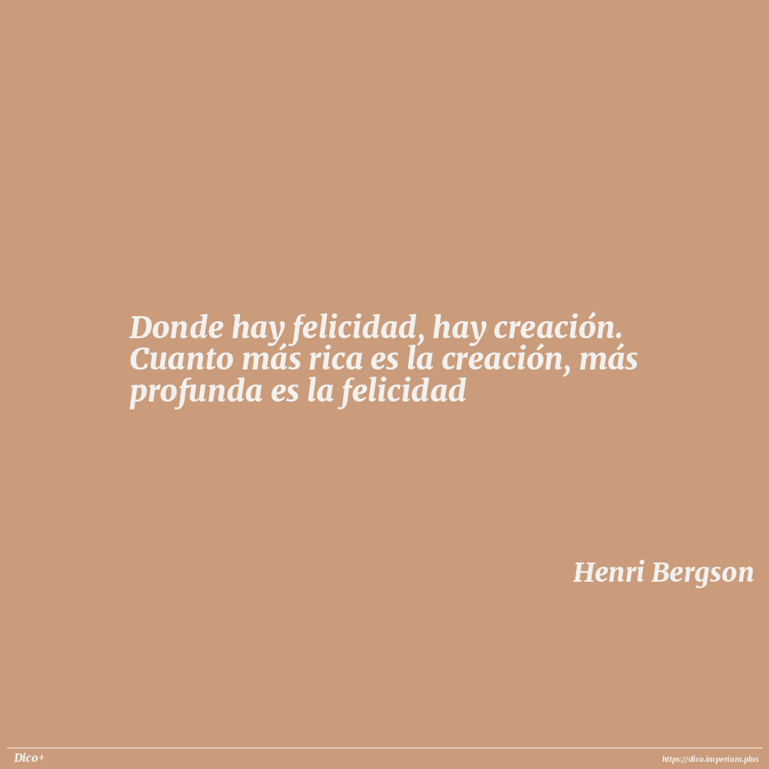 Donde hay felicidad, hay creación. Cuanto más rica es la creación, más profunda es la felicidad