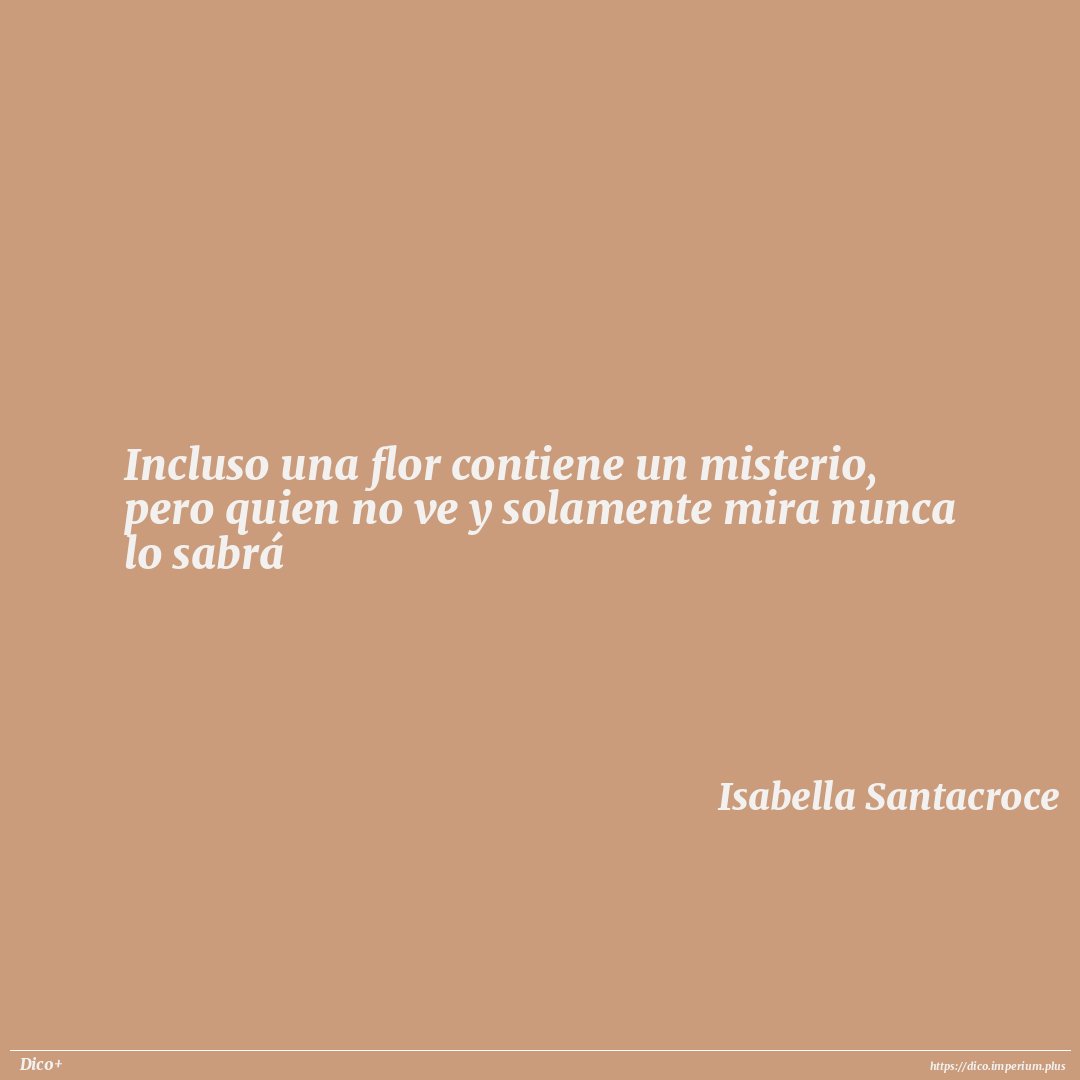 Incluso una flor contiene un misterio, pero quien no ve y solamente mira nunca lo sabrá