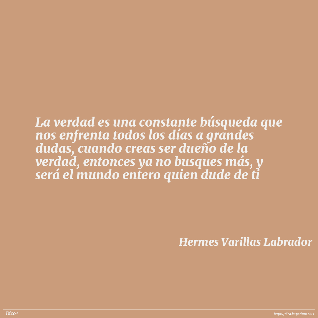 La verdad es una constante búsqueda que nos enfrenta todos los días a grandes dudas, cuando creas ser dueño de la verdad, entonces ya no busques más, y será el mundo entero quien dude de ti