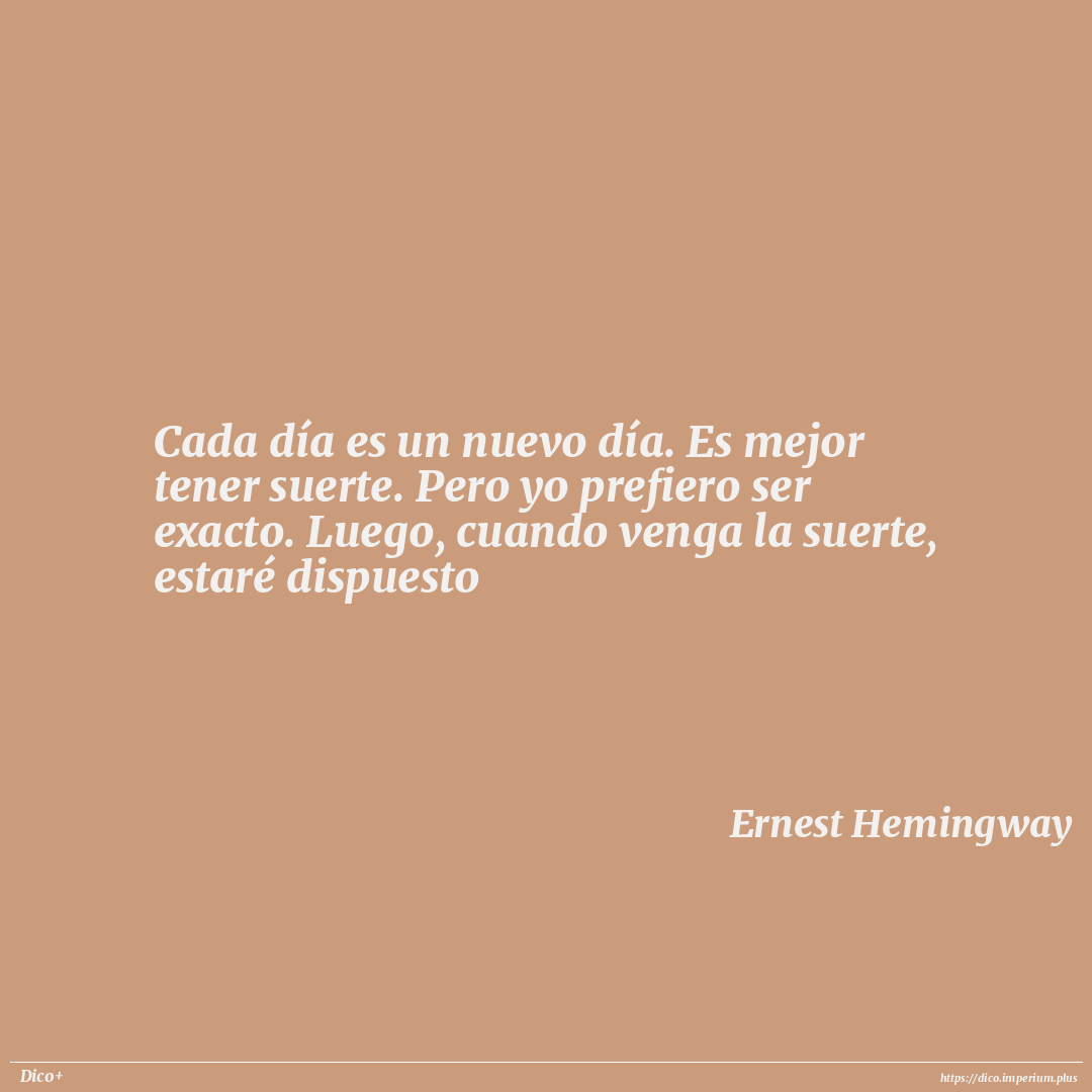 Cada día es un nuevo día. Es mejor tener suerte. Pero yo prefiero ser exacto. Luego, cuando venga la suerte, estaré dispuesto
